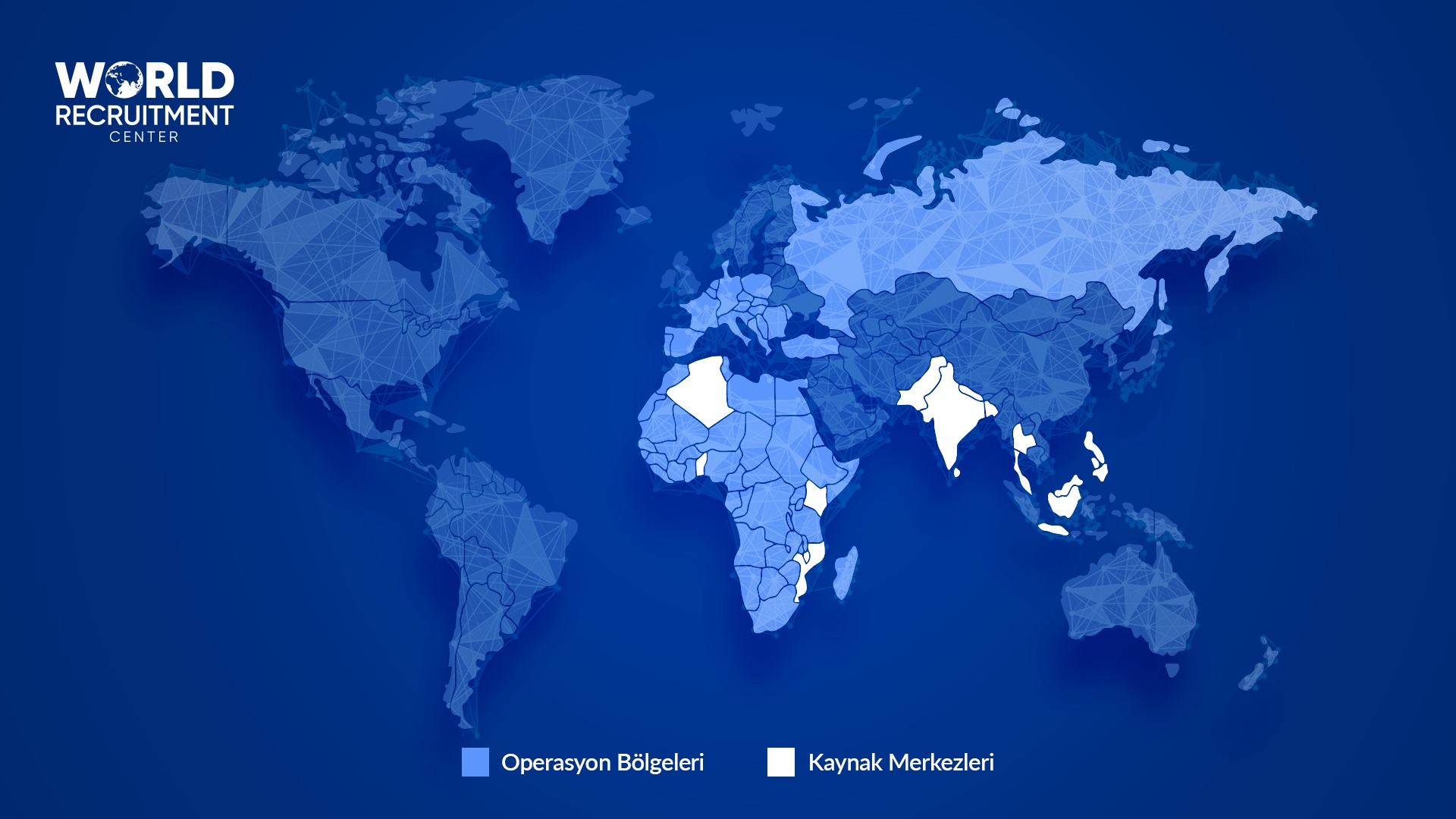 World Recruitment Center’nin uluslararası aday kaynak ve operasyon ağı; Asya ve Afrika’daki güçlü merkezler ile Körfez, Türkiye, Avrupa ve çevre pazarlarda aktif saha varlığına sahiptir.